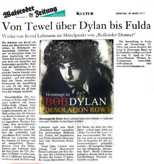 23.03.12 - FULDA - Das Buch mit Bild zum Lied: Bernd Lehmann aus dem norddeutschen Neuenkirchen hat heute in Fulda sein Buch zum Lied „Desolation Row“ von Bob Dylan vorgestellt. Die Texte stammen von dem Fuldaer Journalisten Hermann Diel.